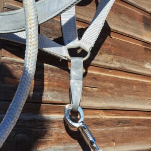 Praktisch im Alltag: Kann dauerhaft am unteren Ring des Halfters bleiben. Zum Führen bitte den Strick direkt ins Halfter hängen.
